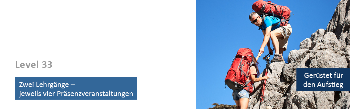 Wenn Sie diese Qualifikation bereits besitzen, aber gerne Ihre Kenntnisse auffrischen oder vertiefen möchten, dann ist unser Programm Level 33 Executive das Richtige für Sie.